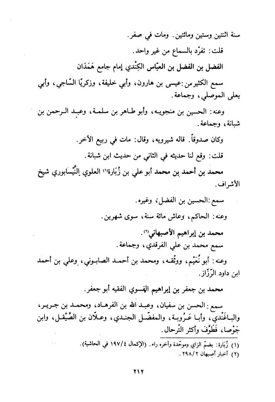 الفضل بن الفضل بن العبّاس الكنْدي إمام جامع همدان سمع الكثير من: عيسى بن هارون، وأبي خليفة، وزكريّا السّاجي، وأبي يعلى الموصلي، وجماعة.