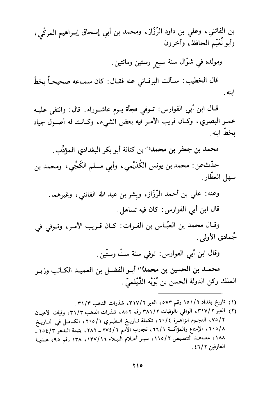 [1] تاريخ بغداد 2/ 151 رقم 573، العبر 2/ 317، شذرات الذهب 3/ 31.