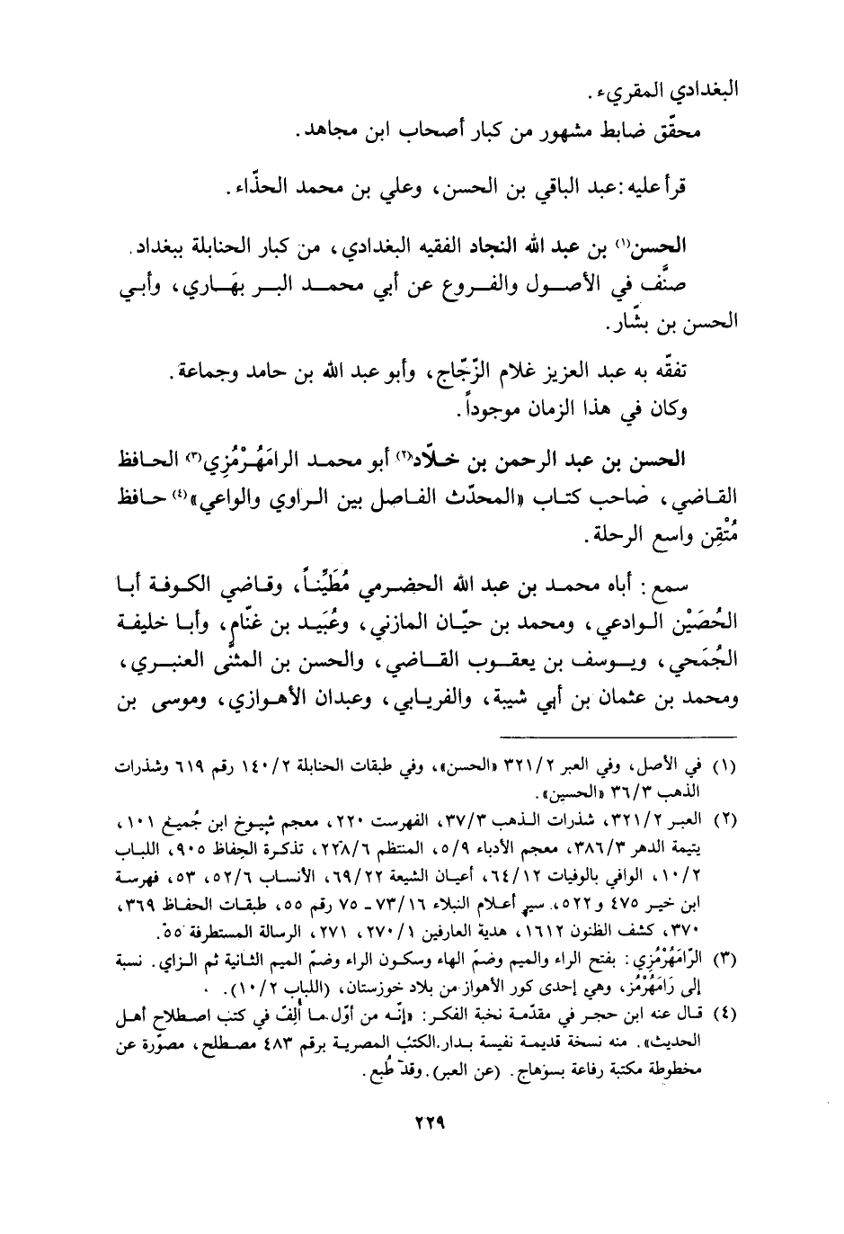 [3] الرّامهرمزي: بفتح الراء والميم وضمّ الهاء وسكون الراء وضمّ الميم الثانية ثم الزاي. نسبة إلى رامهرمز، وهي إحدى كور الأهواز من بلاد خوزستان، (اللباب 2/ 10) .