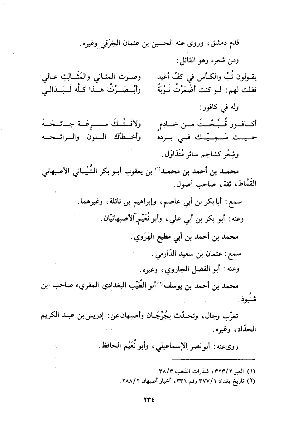 [2] تاريخ بغداد 1/ 377 رقم 336، أخبار أصبهان 2/ 288.