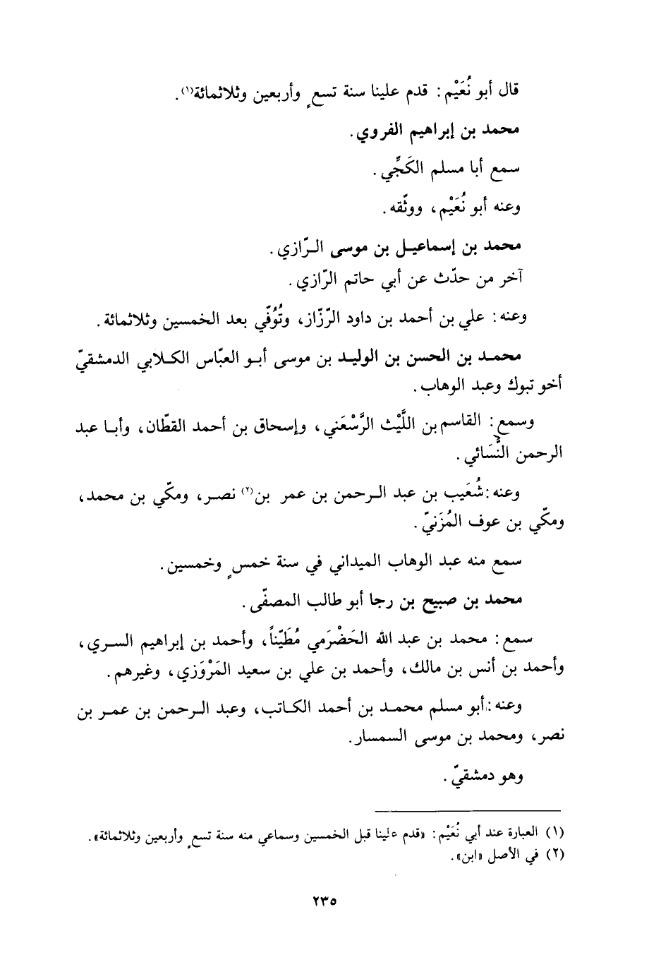 [1] العبارة عند أبي نعيم: «قدم علينا قبل الخمسين وسماعي منه سنة تسع وأربعين وثلاثمائة» .