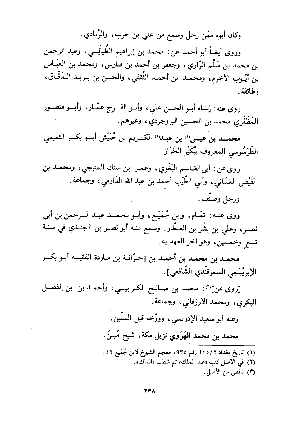 [1] تاريخ بغداد 2/ 405 رقم 935، معجم الشيوخ لابن جميع 42.