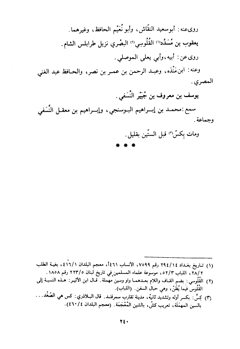 يعقوب بن مُسَدد [1] القُلُوسِيُّ [2] البصْري نزيل طرابلس الشام.