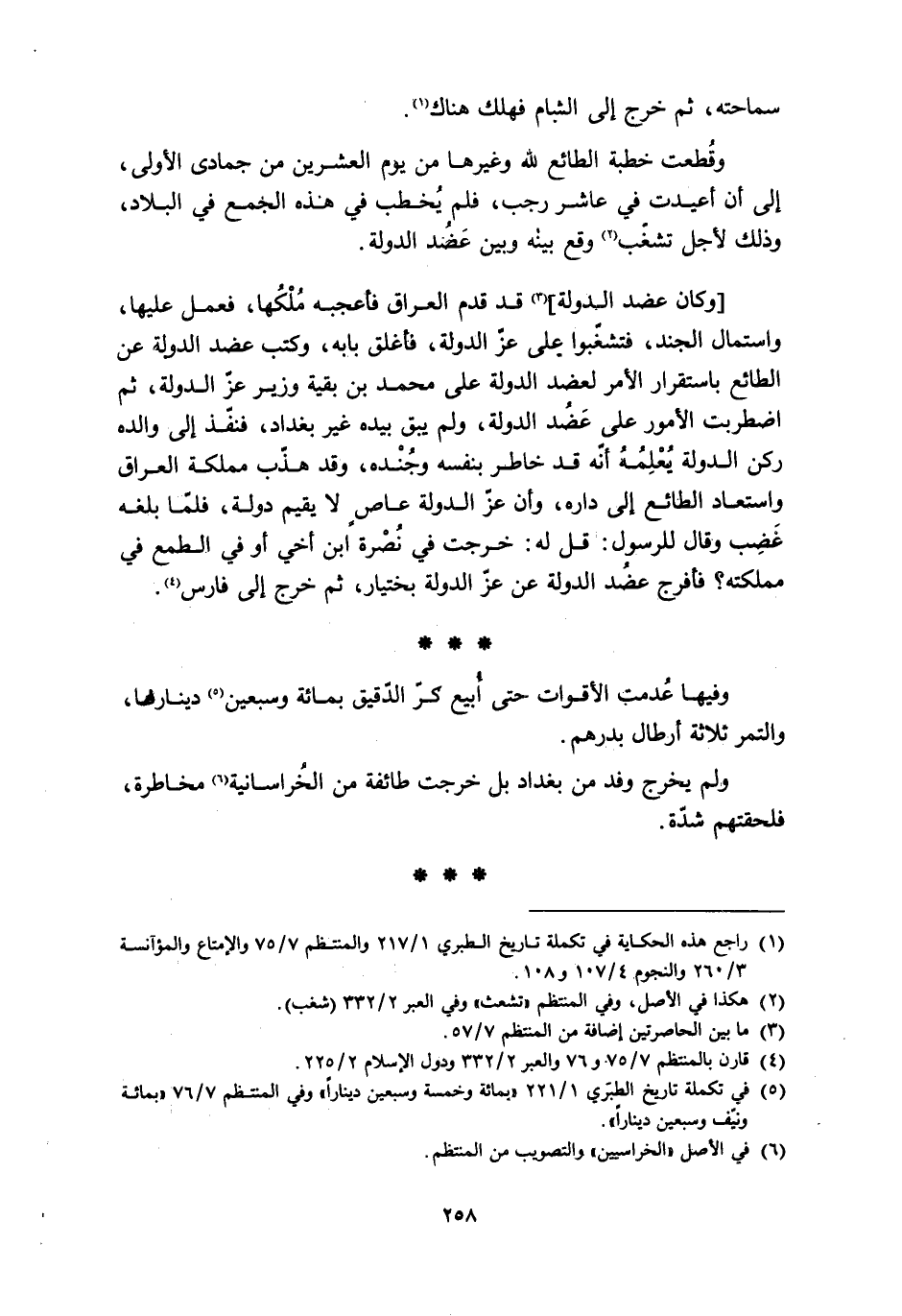 [4] قارن بالمنتظم 7/ 75 و 76 والعبر 2/ 332 ودول الإسلام 2/ 225.