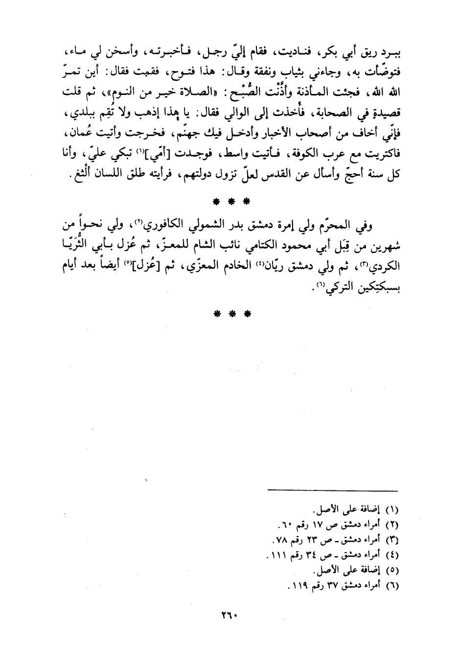 وفي المحرّم ولي إمرة دمشق بدر الشمولي الكافوري [2] ، ولي نحوًا من شهرين من قِبَل أبي محمود الكتامي نائب الشام للمعزّ، ثم عُزل بأبي الثُّريّا الكردي [3] ، ثم ولي دمشق ريّان [4] الخادم المعزّي، ثم [عُزل] [5] أيضًا بعد أيام بسبكتكين التركي [6] .