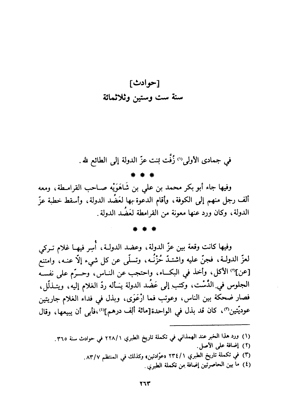 [1] ورد هذا الخبر عند الهمذاني في تكملة تاريخ الطبري 1/ 228 في حوادث سنة 365.