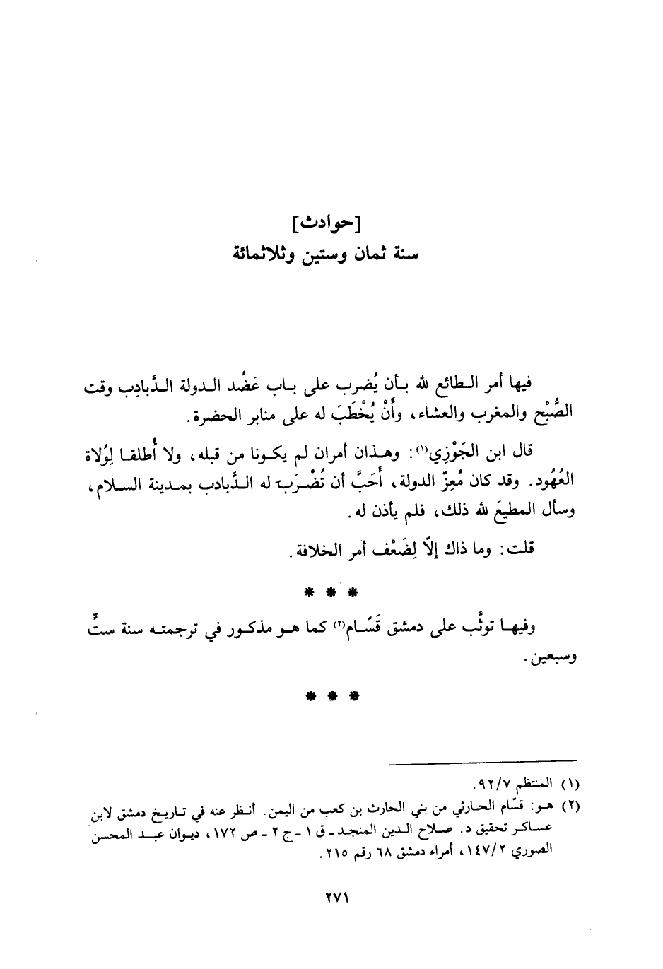 وفيها توثّب على دمشق قَسّام [2] كما هو مذكور في ترجمته سنة ستّ وسبعين.