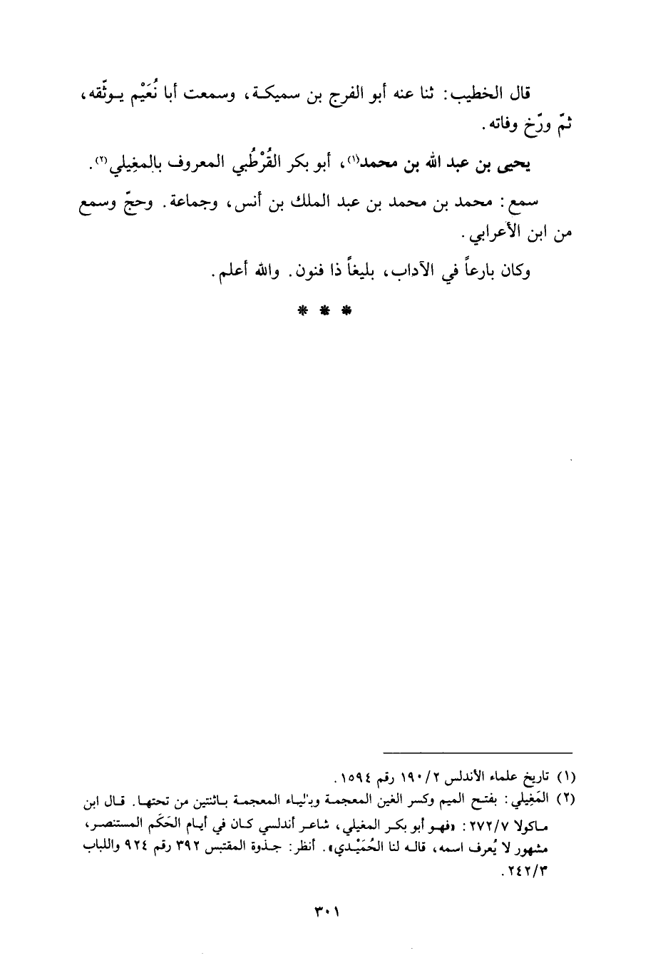 [1] تاريخ علماء الأندلس 2/ 190 رقم 1594.