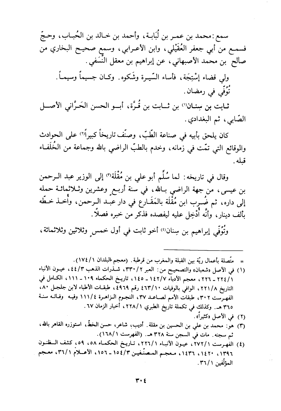 وتُوُفّي إبراهيم بن سِنان [4] أخو ثابت في أول خمس وثلاثين وثلاثمائة،