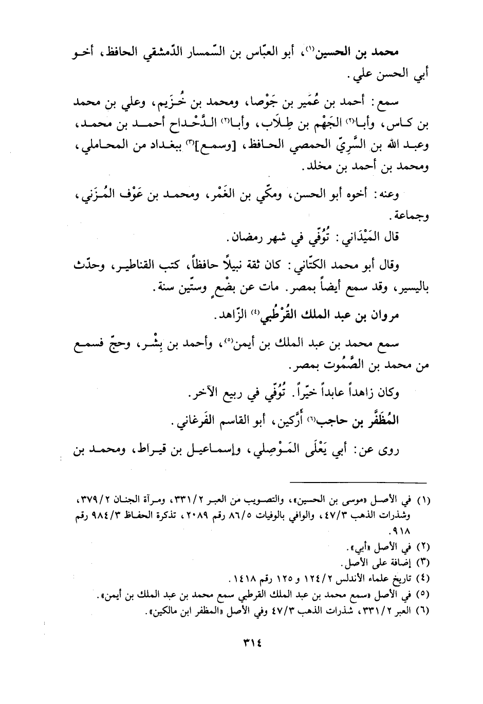 [1] في الأصل «موسى بن الحسين» ، والتصويب من العبر 2/ 331، ومرآة الجنان 2/ 379، وشذرات الذهب 3/ 47، والوافي بالوفيات 5/ 86 رقم 2089، تذكرة الحفاظ 3/ 984 رقم 918.