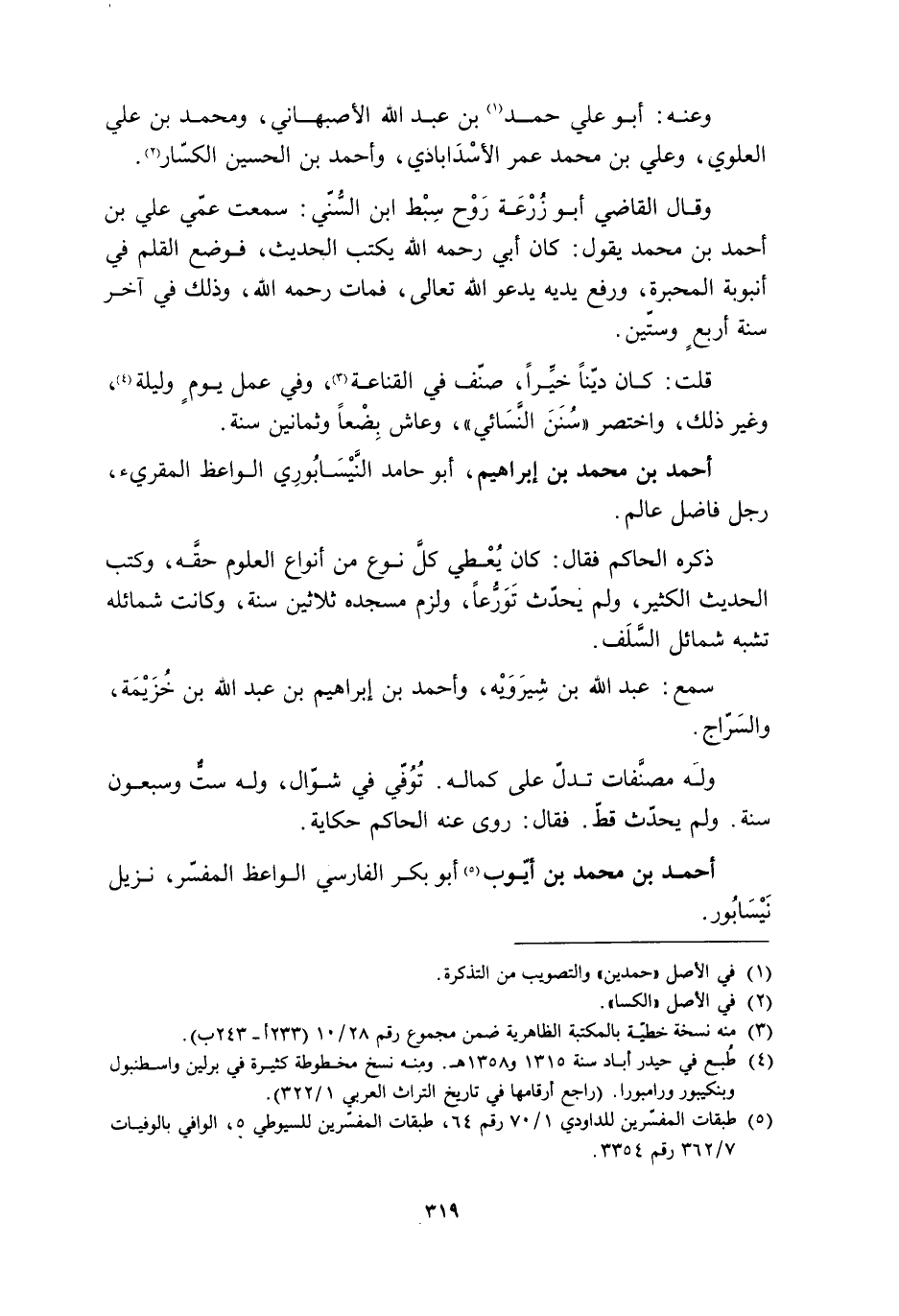 [4] طبع في حيدرآباد سنة 1315 و 1358 هـ. ومنه نسخ مخطوطة كثيرة في برلين وإسطنبول وبنكيبور ورامبورا. (راجع أرقامها في تاريخ التراث العربيّ 1/ 322) .