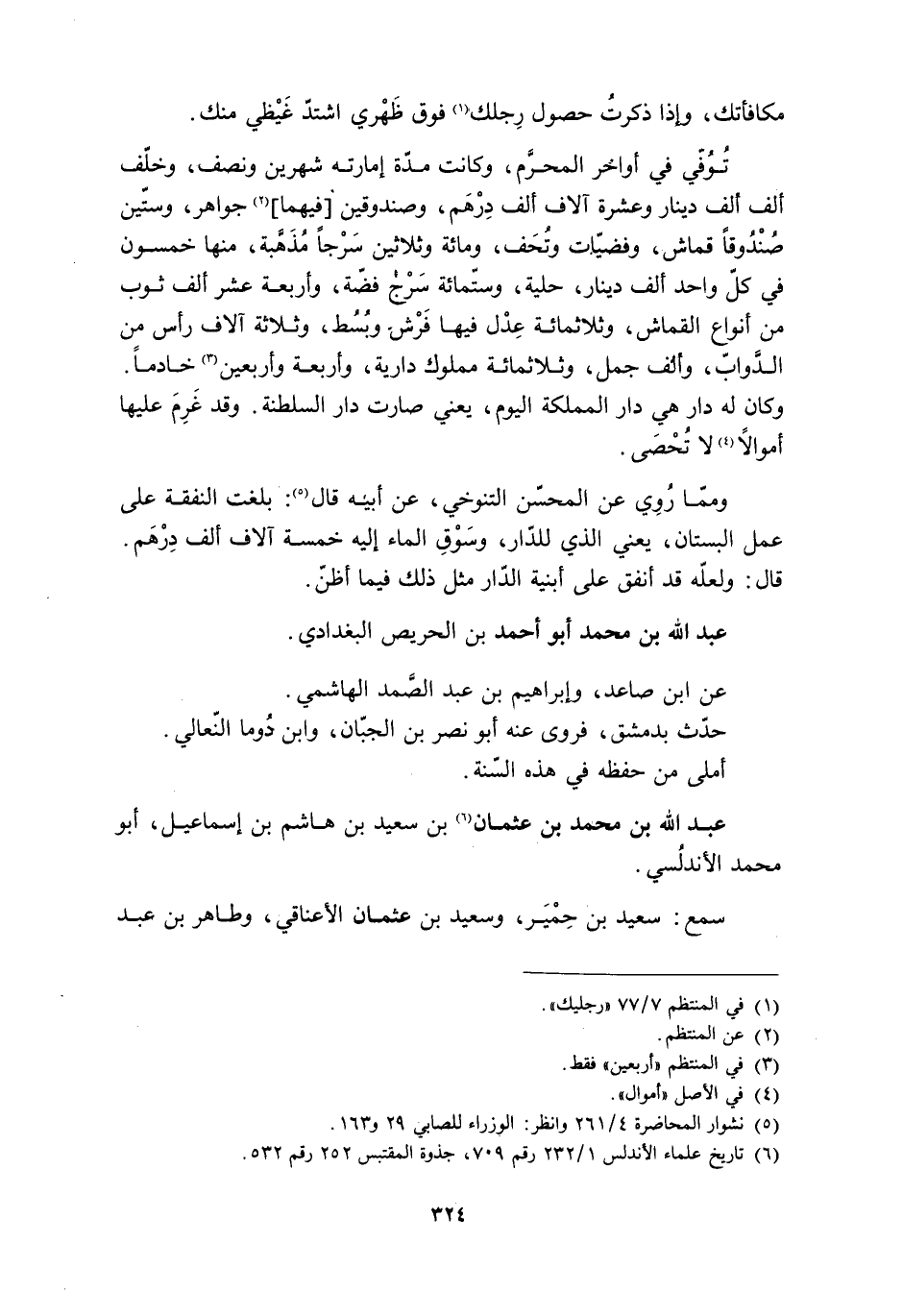 [5] نشوار المحاضرة 4/ 261 وانظر: الوزراء للصابي 29 و 163.
