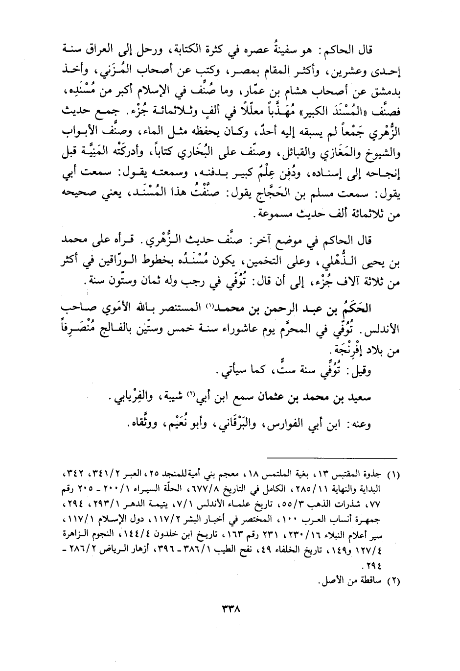 [1] جذوة المقتبس 13، بغية الملتمس 18، معجم بني أمية للمنجد 25، العبر 2/ 341، 342، البداية والنهاية 11/ 285، الكامل في التاريخ 8/ 677، الحلّة السيراء 1/ 200- 205 رقم 77، شذرات الذهب 3/ 55، تاريخ علماء الأندلس 1/ 7، يتيمة الدهر 1/ 293، 294، جمهرة أنساب العرب 100، المختصر في أخبار البشر 2/ 117، دول الإسلام 1/ 117، سير أعلام النبلاء 16/ 230، 231 رقم 163، تاريخ ابن خلدون 4/ 144، النجوم الزاهرة 4/ 127 و 149، تاريخ الخلفاء 49، نفح الطيب 1/ 386- 396، أزهار الرياض 2/ 286- 294.