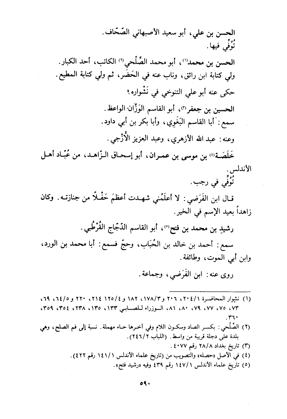 [5] تاريخ علماء الأندلس 1/ 147 رقم 439 وفيه «رشيد فتح» .