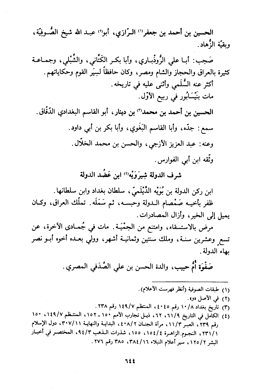 [4] الكامل في التاريخ 9/ 61، 62، ذيل تجارب الأمم 150- 152، المنتظم 7/ 149، 150 رقم 239، العبر 3/ 11، مرآة الجنان 2/ 408، البداية والنهاية 11/ 307، دول الإسلام 1/ 231، النجوم الزاهرة 4/ 154، 155، شذرات الذهب 3/ 94، المختصر في أخبار البشر 2/ 125، سير أعلام النبلاء 16/ 384، 385 رقم 276.