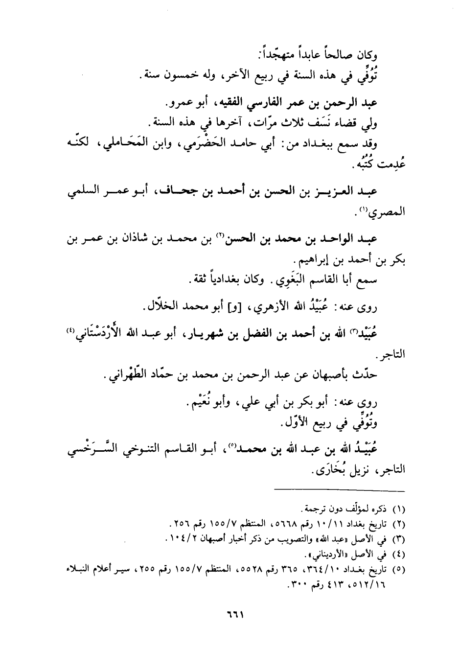 [5] تاريخ بغداد 10/ 364، 365 رقم 5528، المنتظم 7/ 155 رقم 255، سير أعلام النبلاء 16/ 512، 413 رقم 300.