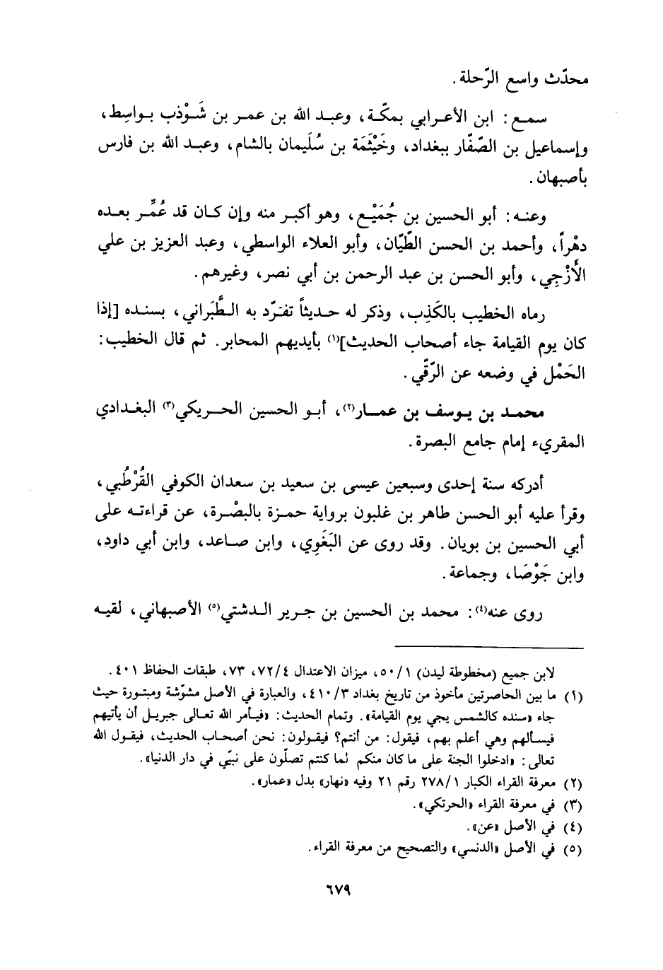 [2] معرفة القراء الكبار 1/ 278 رقم 21 وفيه «نهار» بدل «عمار» .