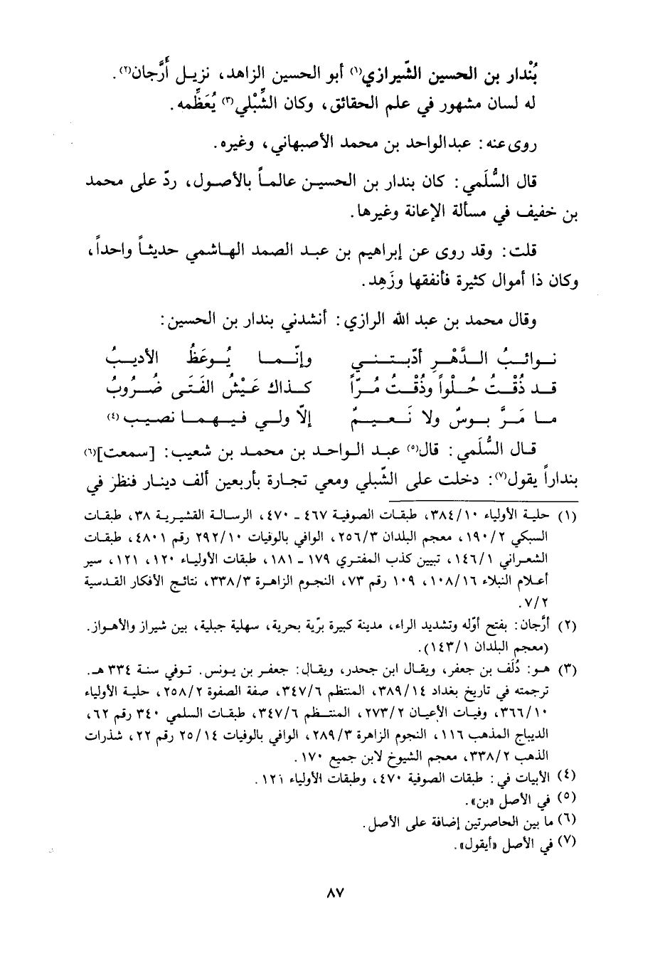 [4] الأبيات في: طبقات الصوفية 470، وطبقات الأولياء 121.