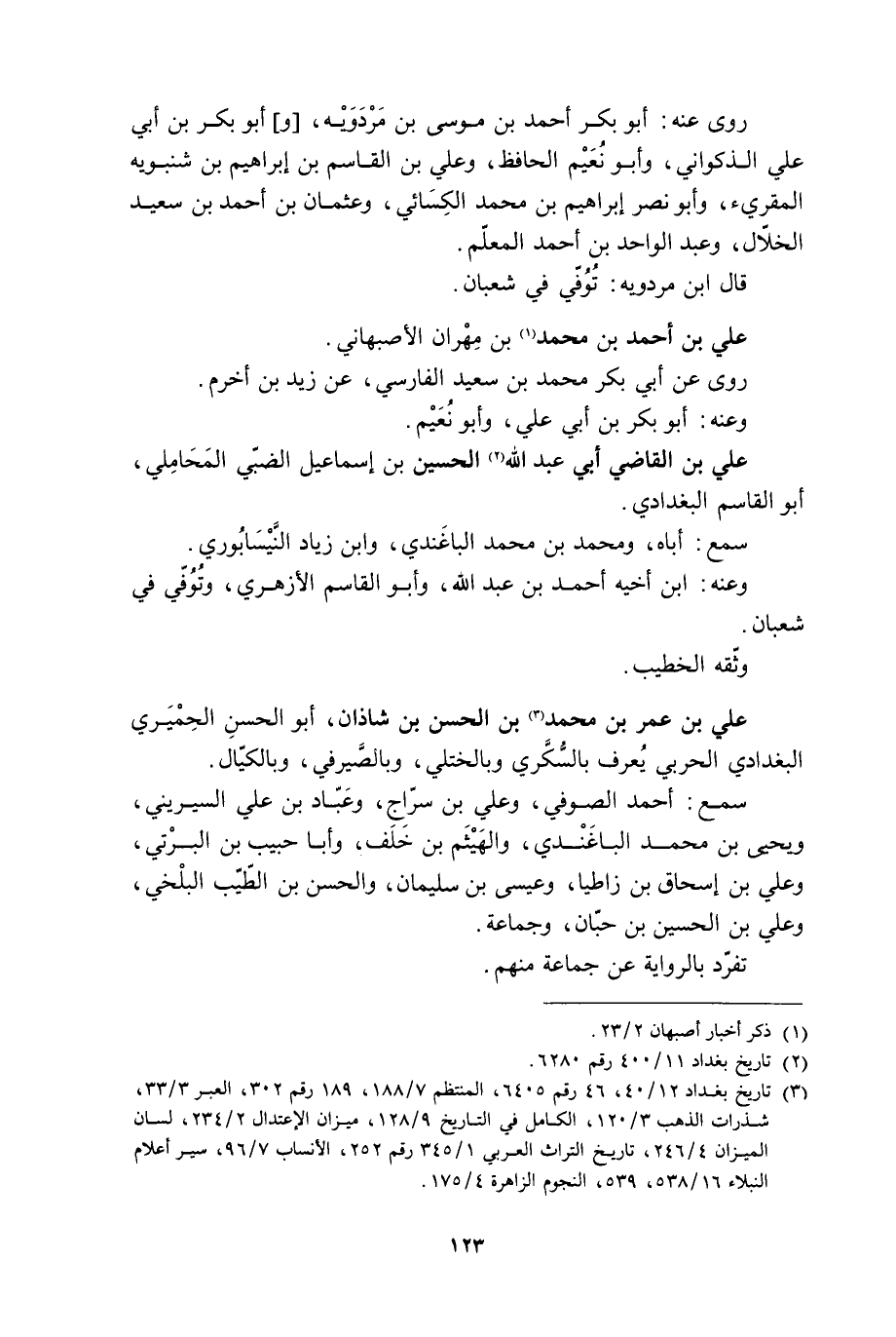 [2] تاريخ بغداد 11/ 400 رقم 6280.