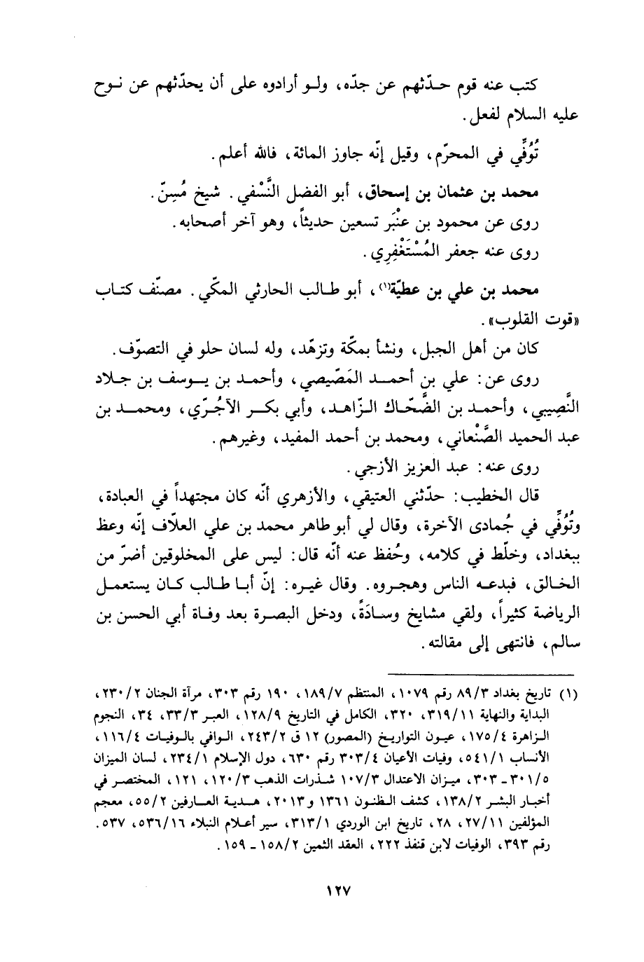 مُحَمَّد بْن عَلِيّ بْن عطيه [1] ، أَبُو طَالِب الحارثي المكّي. مصنّف كتاب «قوت القلوب» .