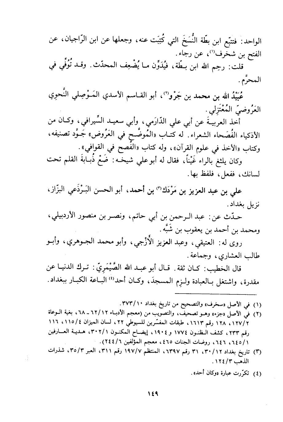 [3] تاريخ بغداد 12/ 30، 31، رقم 6397، المنتظم 7/ 197 رقم 311، العبر 3/ 35، شذرات الذهب 3/ 124.