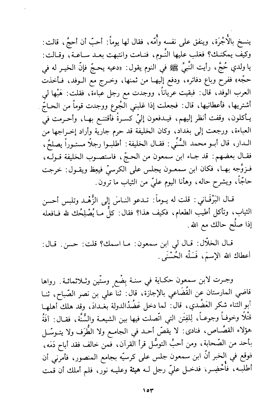 ينسخ بالأجْرة، وينفق عَلَى نفسه وأمه، فَقَالَ لها يومًا: أحبّ أن أحجَّ، قَالَتْ: