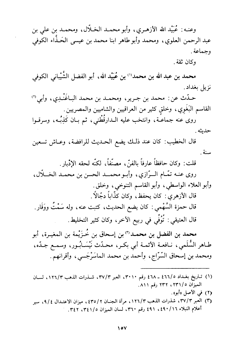 مُحَمَّدِ بْنِ عَبْدِ اللَّهِ بْنِ مُحَمَّدِ [1] بْنِ عُبَيْد اللَّه، أَبُو الفَضْل الشَّيْباني الكوفي نزيل بغداد.
