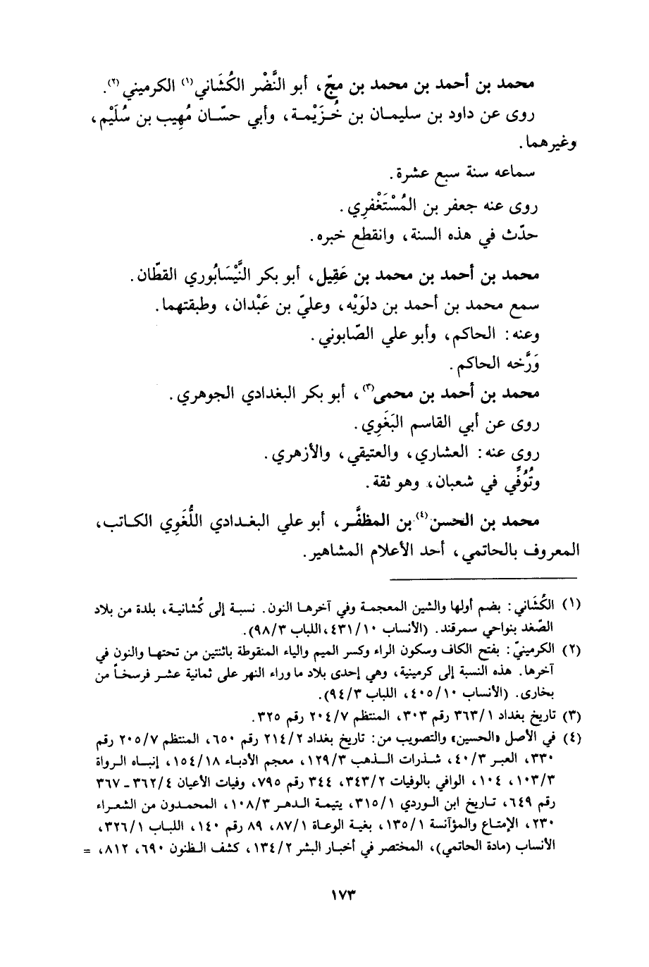 [1] الكشاني: بضم أولها والشين المعجمة وفي آخرها النون. نسبة إلى كشانية، بلدة من بلاد الصّغد بنواحي سمرقند. (الأنساب 10/ 431، اللباب 3/ 98) .