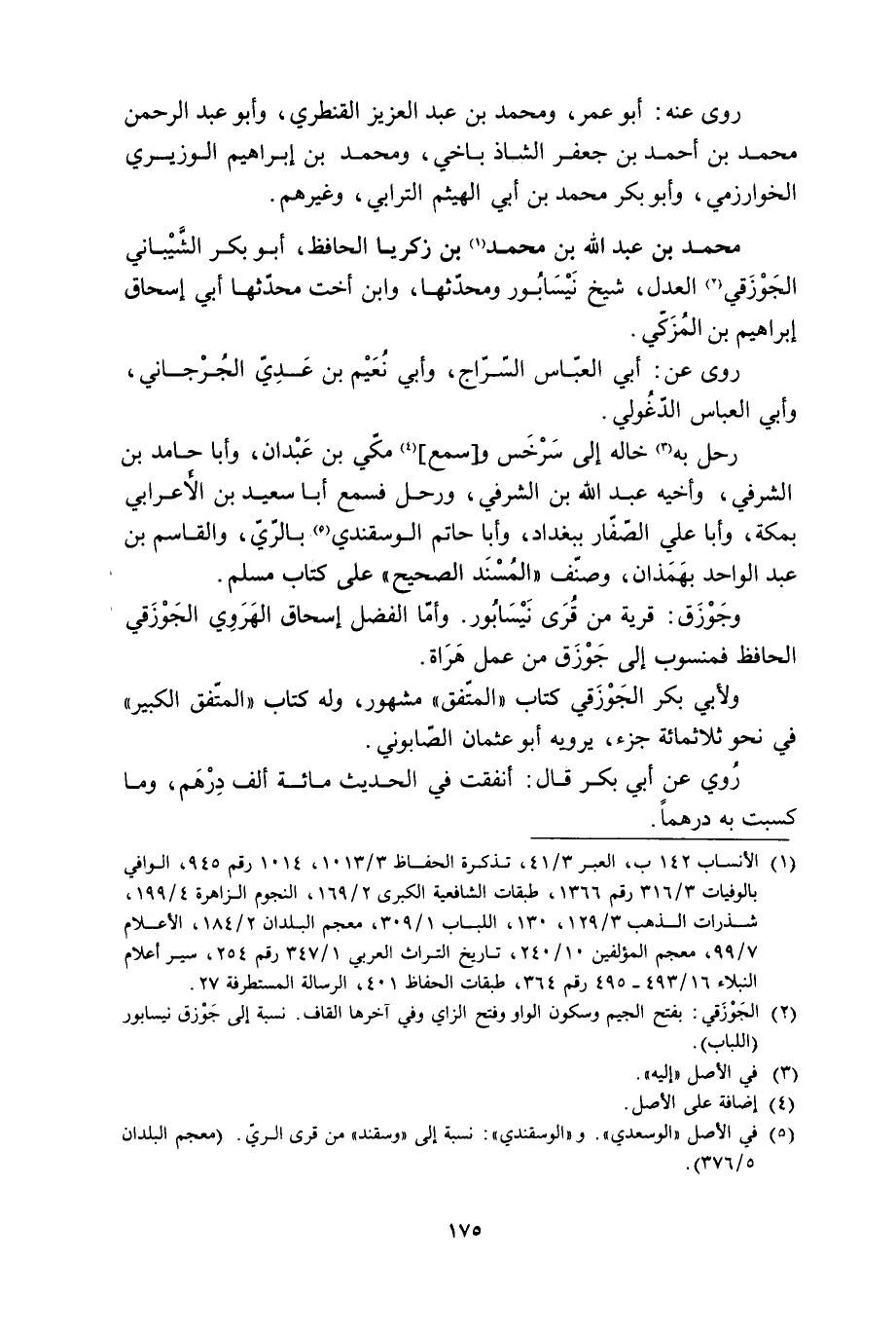 [2] الجوزقى: بفتح الجيم وسكون الواو وفتح الزاى وفي آخرها القاف. نسبة إلى جوزق نيسابور (اللباب) .