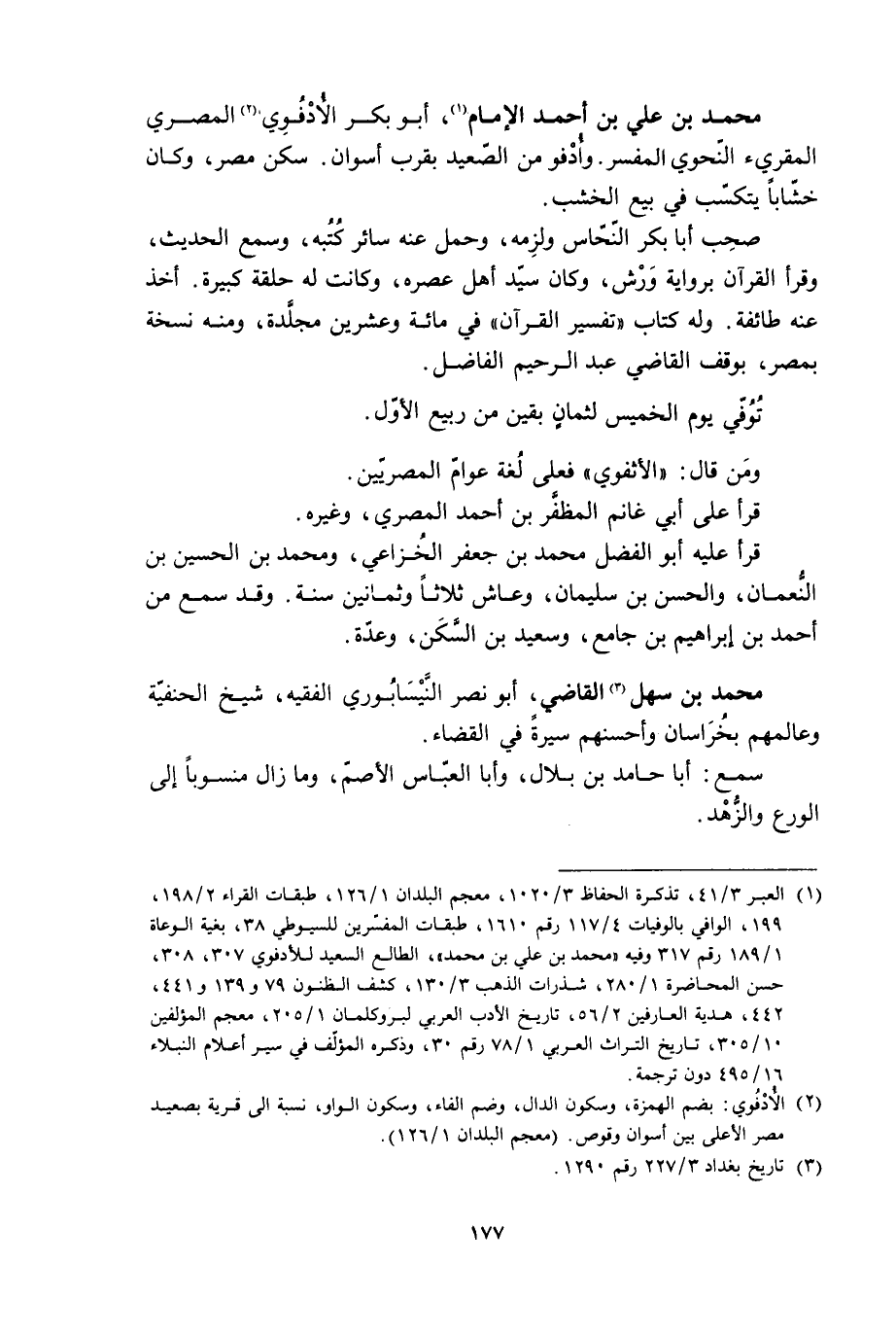 [2] الأدفوي: بضم الهمزة، وسكون الدال، وضم الفاء، وسكون الواو، نسبة الى قرية بصعيد مصر الأعلى بين أسوان وقوص. (معجم البلدان 1/ 126) .
