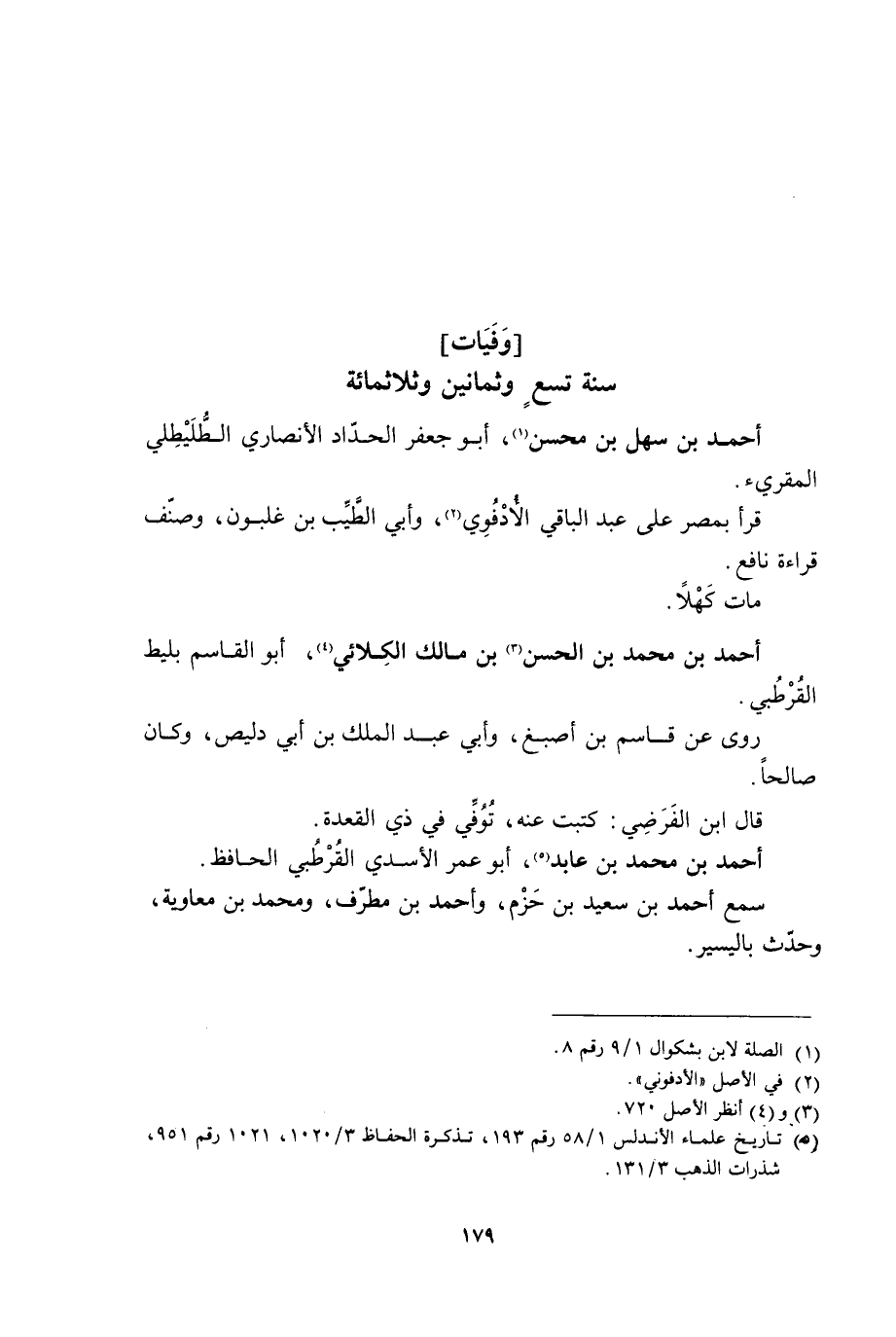 [5] تاريخ علماء الأندلس 1/ 58 رقم 193، تذكرة الحفاظ 3/ 1020، 1021 رقم 951، شذرات الذهب 3/ 131.