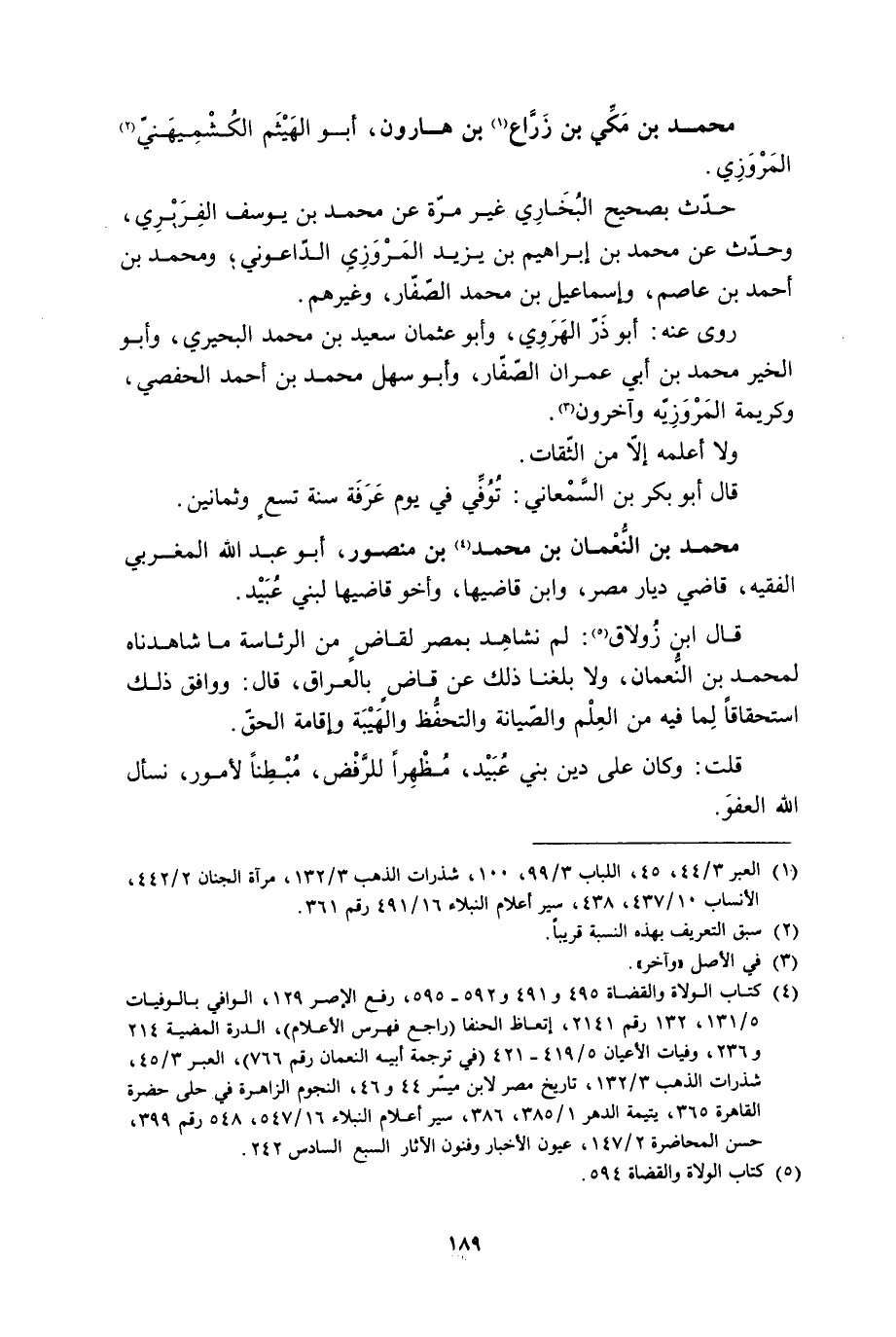 [1] العبر 3/ 44، 45، اللباب 3/ 99، 100، شذرات الذهب 3/ 132، مرآة الجنان 2/ 442، الأنساب 10/ 437، 438، سير أعلام النبلاء 16/ 491 رقم 361.