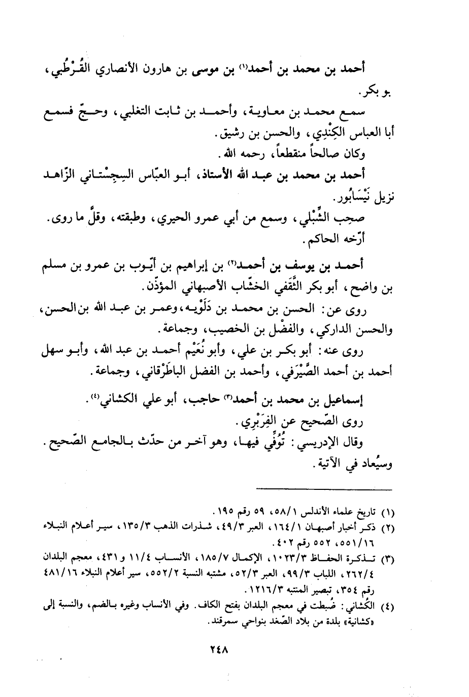 [3] تذكرة الحفاظ 3/ 1023، الإكمال 7/ 185، الأنساب 4/ 11 و 431، معجم البلدان 4/ 262، اللباب 3/ 99، العبر 3/ 52، مشتبه النسبة 2/ 552، سير أعلام النبلاء 16/ 481 رقم 354، تبصير المنتبه 3/ 1216.