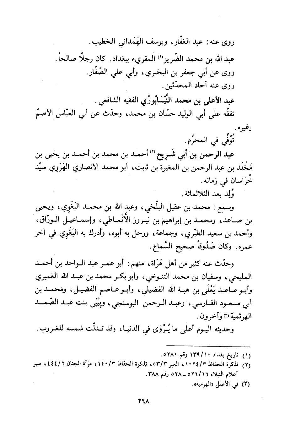 [2] تذكرة الحفاظ 3/ 1024، العبر 3/ 53، تذكرة الحفاظ 3/ 140، مرآة الجنان 2/ 444، سير أعلام النبلاء 16/ 526- 528 رقم 388.