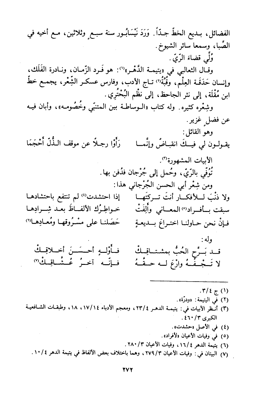 [6] يتيمة الدهر 4/ 16، وفيات الأعيان 3/ 280.