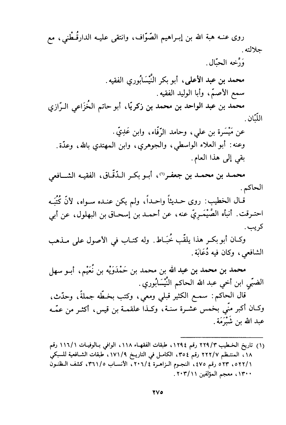 [1] تاريخ الخطيب 3/ 229 رقم 1294، طبقات الفقهاء 118، الوافي بالوفيات 1/ 116 رقم 18، المنتظم 7/ 222 رقم 354، الكامل في التاريخ 9/ 171، طبقات الشافعية للسبكى 1/ 522، 523 رقم 475، النجوم الزاهرة 4/ 206، الأنساب 5/ 361، كشف الظنون 1300، معجم المؤلفين 11/ 203.