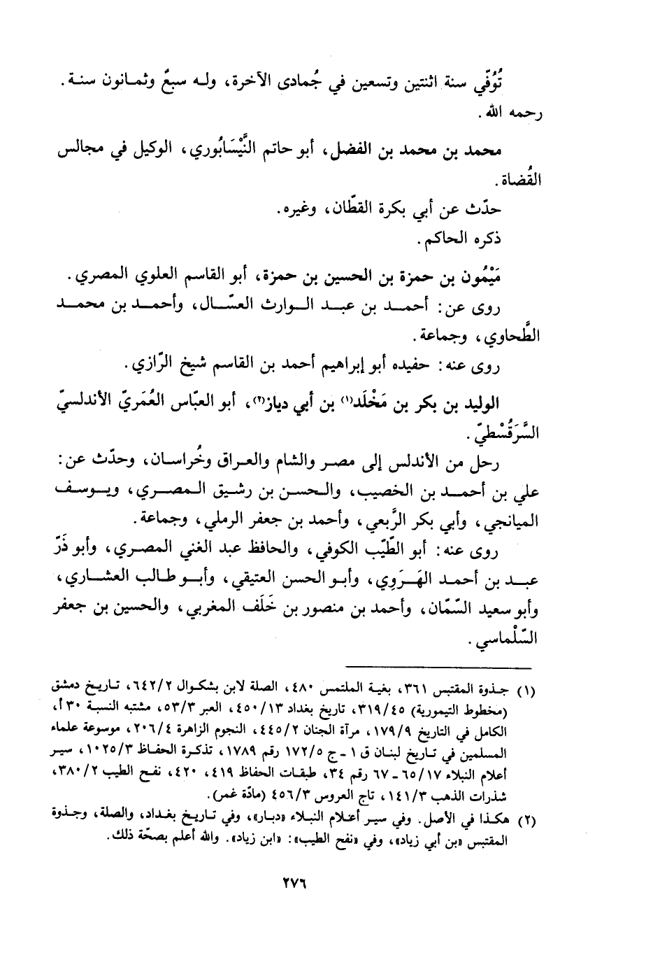 [2] هكذا في الأصل. وفي سير أعلام النبلاء و «دبار» ، وفي تاريخ بغداد، والصلة، وجذوة المقتبس «بن أبى زياد» ، وفي «نفح الطيب» : «ابن زياد» . والله أعلم بصحّة ذلك.
