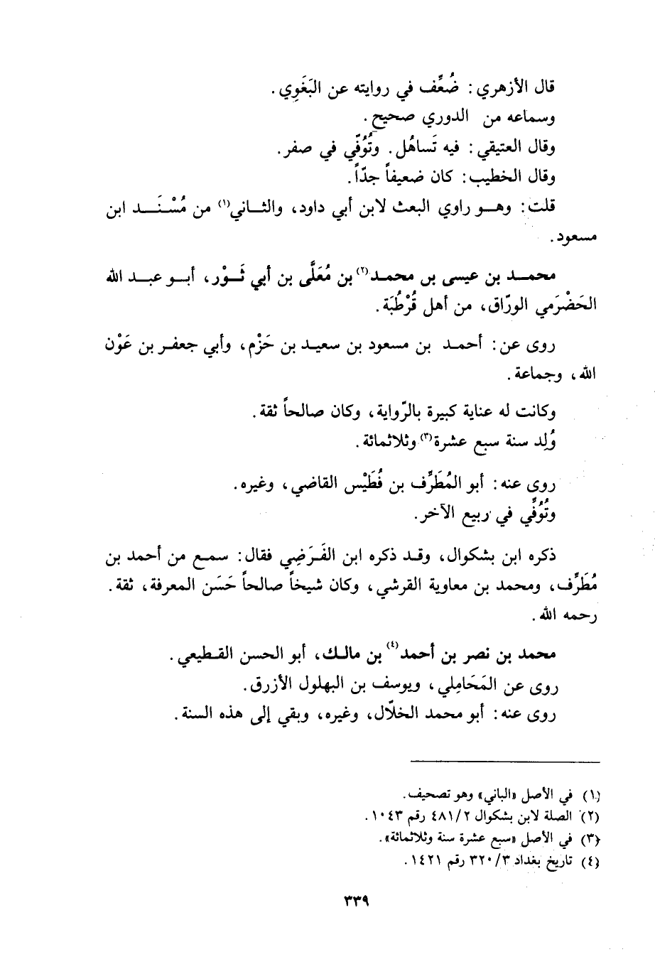 [4] تاريخ بغداد 3/ 320 رقم 1421.