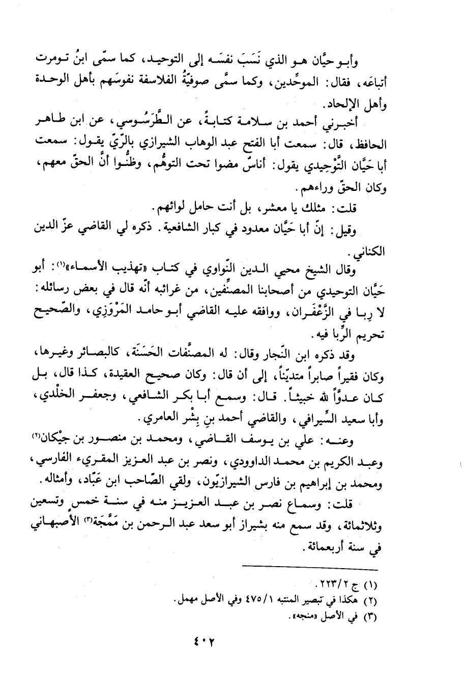وقَالَ الشَّيْخ محيي الدين النّواوي فِي كتاب «تهذيب الْأسماء» [1] : أَبُو حَيَّان التَّوْحِيدِي من أصحابنا المصنَّفين، من غرائبه أَنَّهُ قَالَ فِي بعض رسائله: