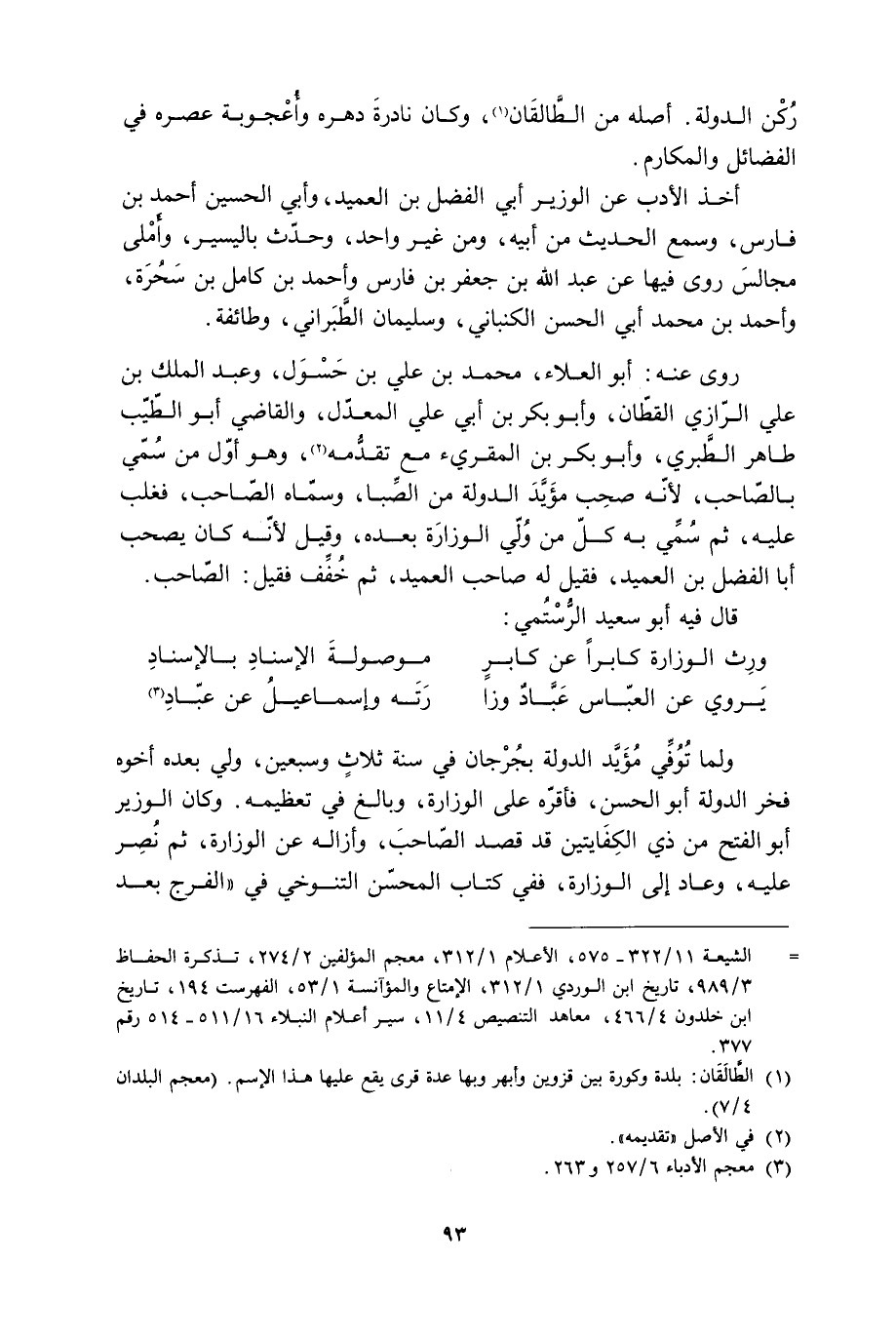 ركن الدولة. أصله من الطَّالقان [1] ، وكان نادرةَ دهره وأُعجوبة عصره فِي الفضائل والمكارم.