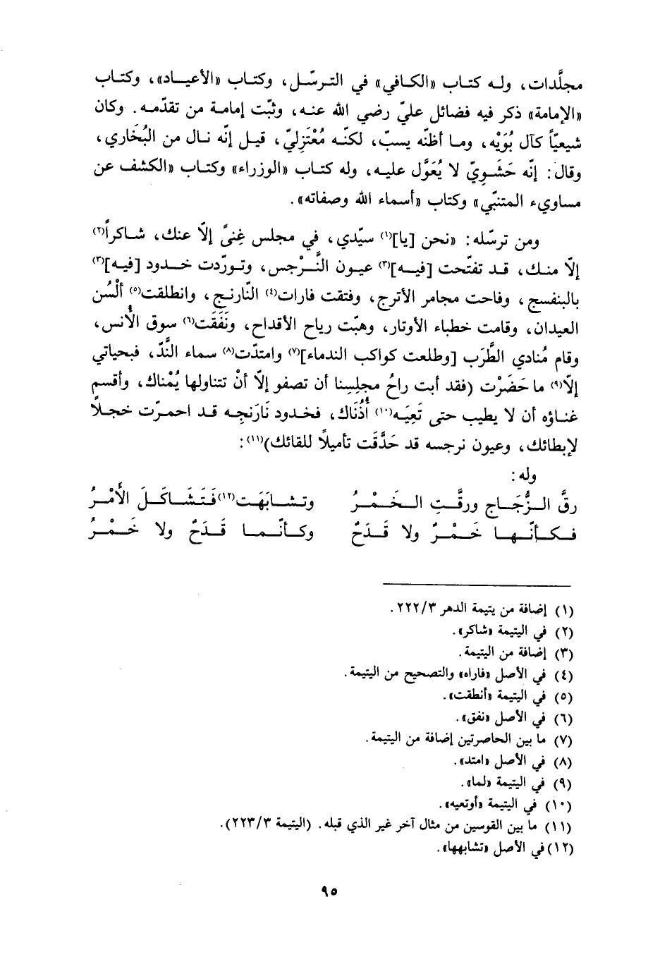 [11] ما بين القوسين من مثال آخر غير الّذي قبله. (اليتيمة 3/ 223) .