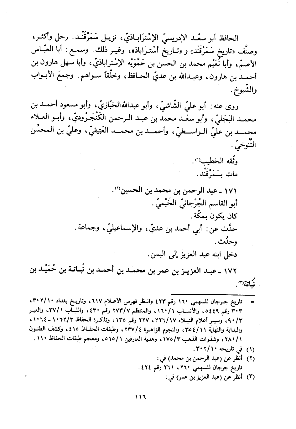 تاريخ جرجان للسهمي 260، 261 رقم 424.