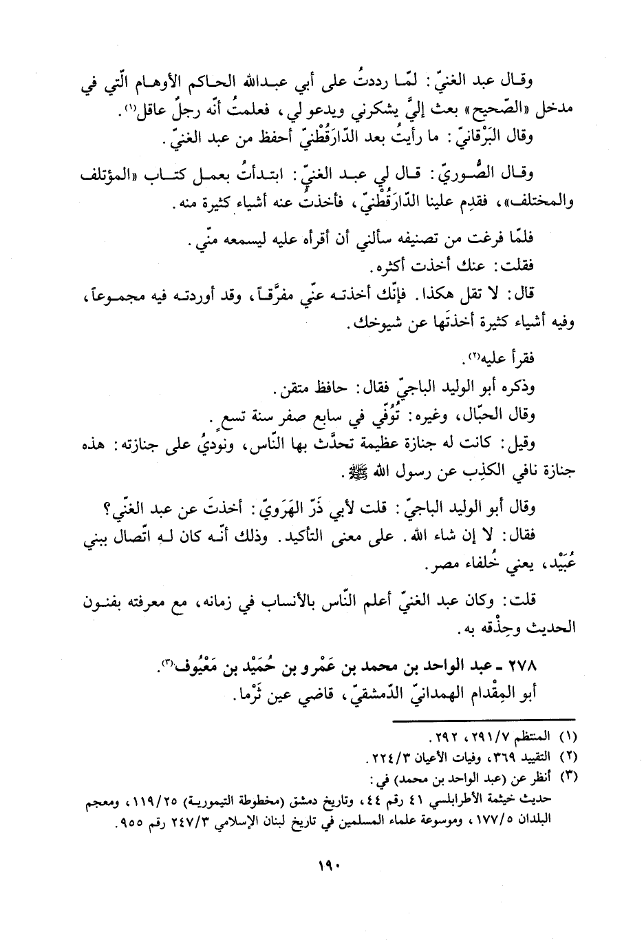 وقال أبو الوليد الباجيّ: قلت لأبي ذَرّ الهَرَويّ: أخذت عَنْ عَبْد الغنيّ؟