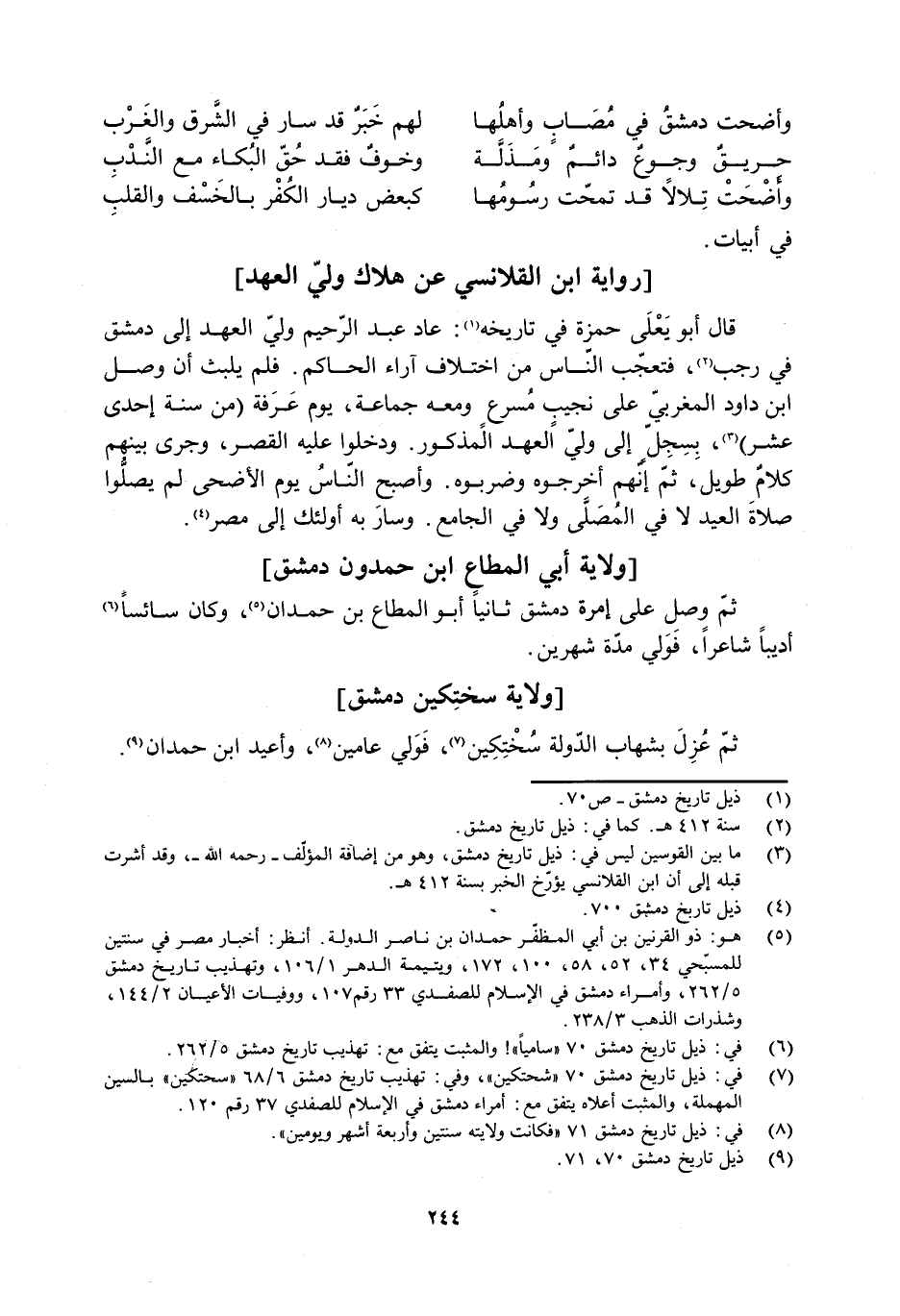 [9] ذيل تاريخ دمشق 70، 71.