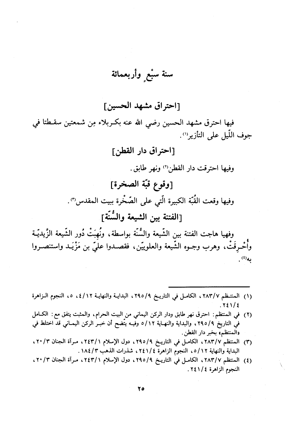 [4] المنتظم 7/ 283، الكامل في التاريخ 9/ 295، دول الإسلام 1/ 243، مرآة الجنان 3/ 20، النجوم الزاهرة 4/ 241.