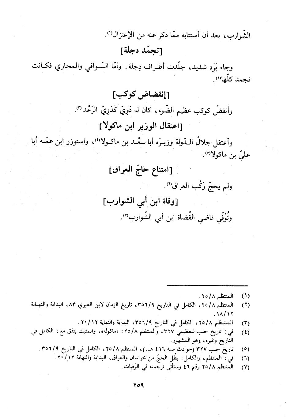 [2] المنتظم 8/ 25، الكامل في التاريخ 9/ 356، تاريخ الزمان لابن العبري 83، البداية والنهاية 12/ 18.