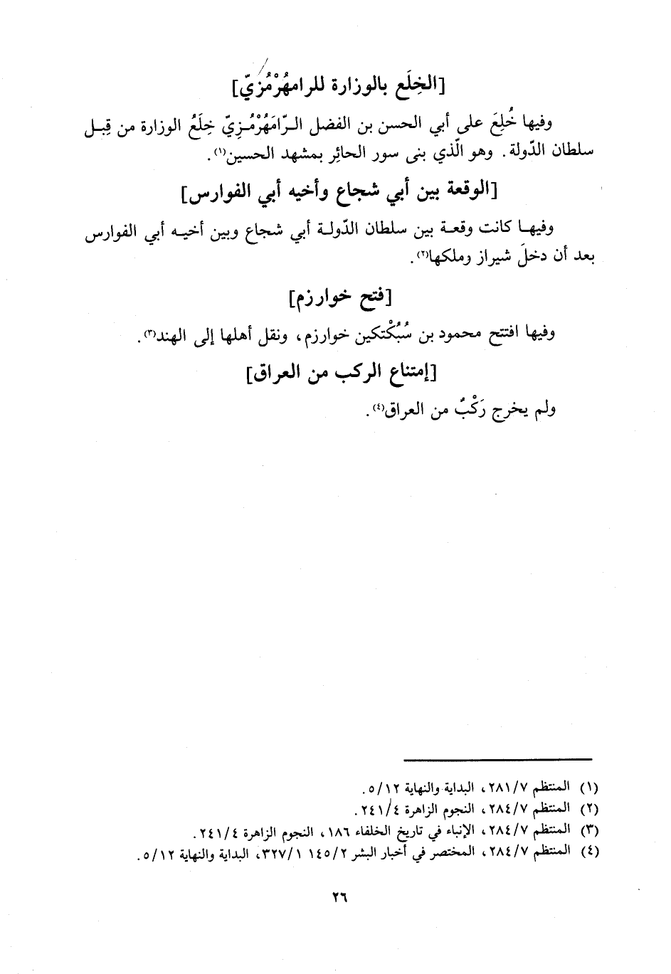 [4] المنتظم 7/ 284، المختصر في أخبار البشر 2/ 145، 1/ 327، البداية والنهاية 12/ 5.