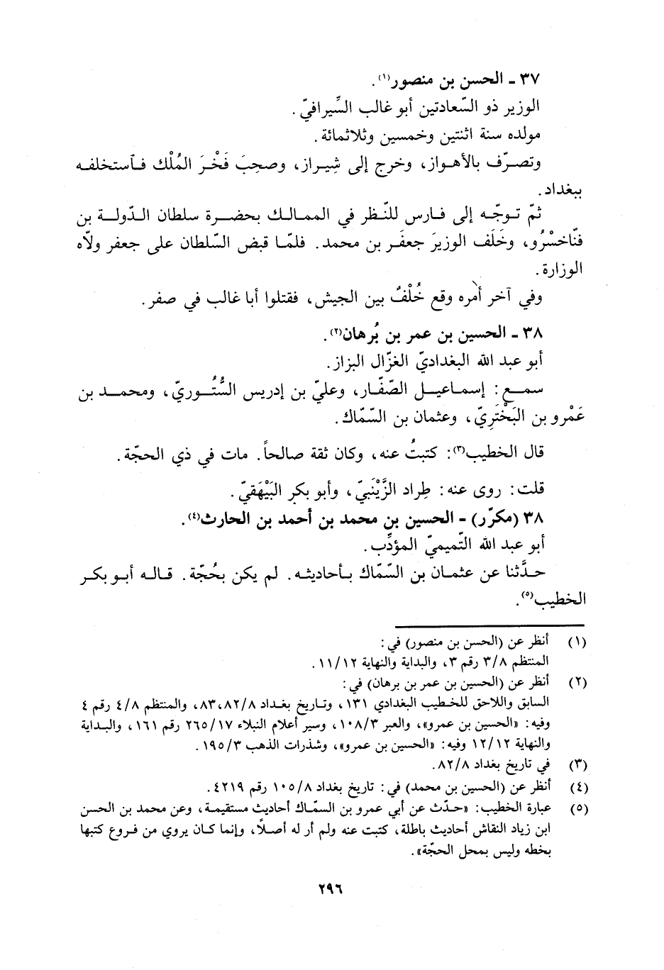 [4] انظر عن (الحسين بن محمد) في: تاريخ بغداد 8/ 105 رقم 4219.