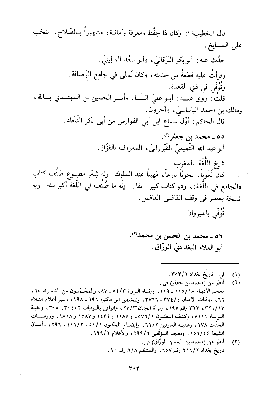[3] انظر عن (محمد بن الحسن الورّاق) في: