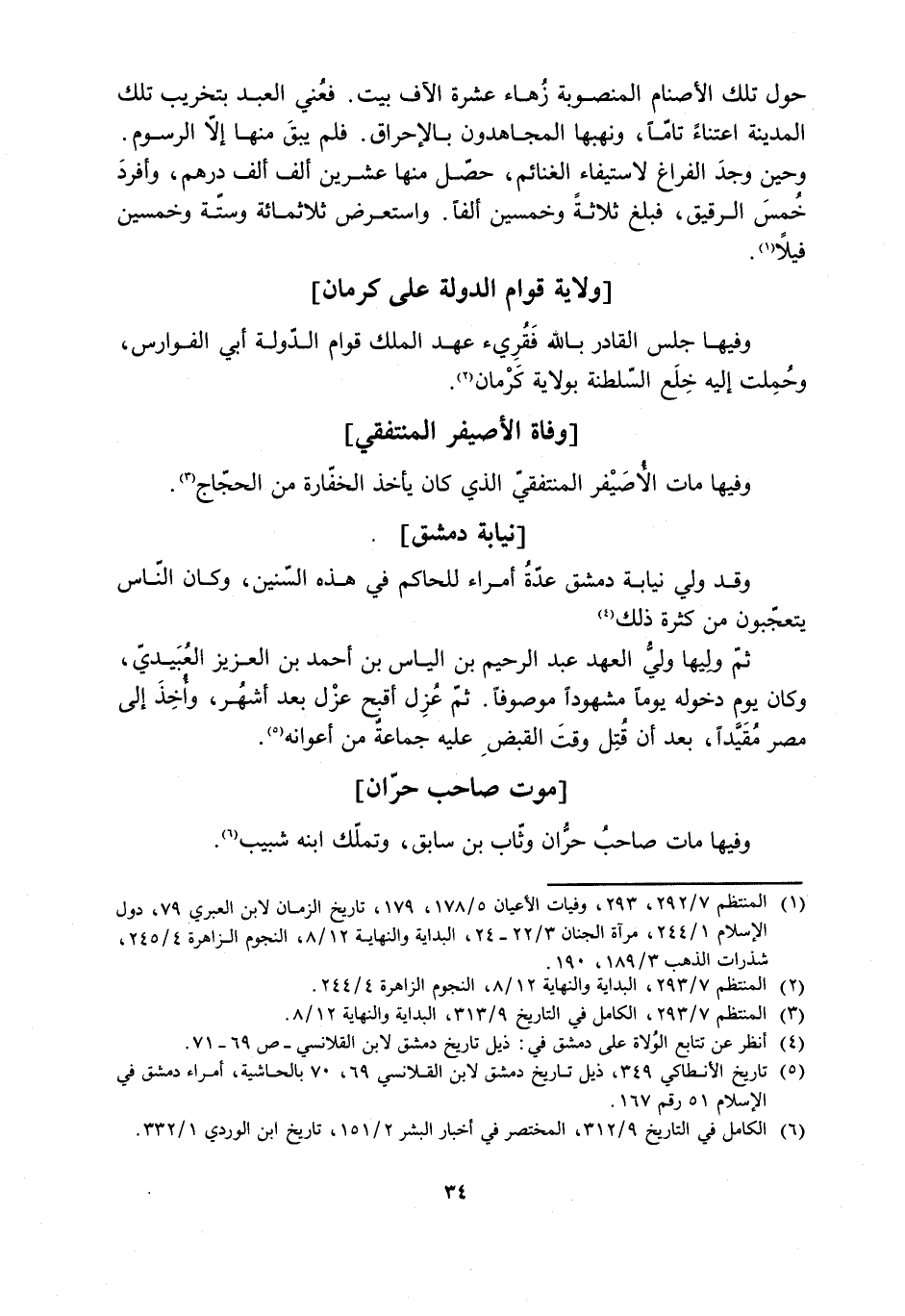 [3] المنتظم 7/ 293، الكامل في التاريخ 9/ 313، البداية والنهاية 12/ 8.